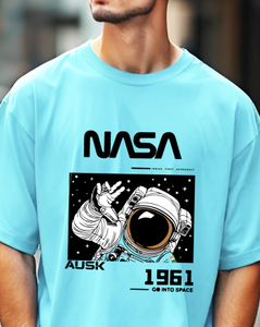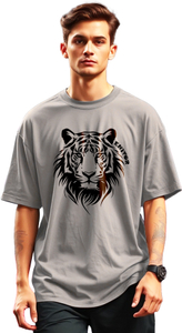 Fabric:Cotton Blend, Half Sleeve, OversizedFit Round NeckT-shirt, Pattern:Printed