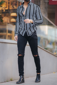 Fabric:Lycra Blend,RegularFit, Full Sleeve,Pattern:Striped,Setof1