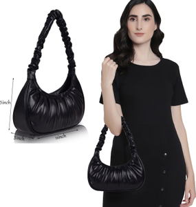 Style: Shoulder Bag,Ideal For: Women,Closure: Zipper,Color: Black,Material: Synthetic Leather