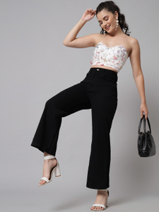Fit:Flared,Fabric:Cotton Blend,Clean Look High RiseJeans,Clean Look