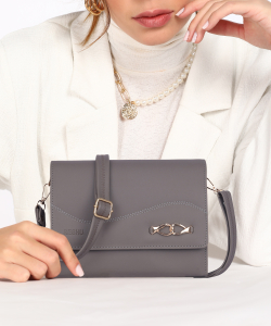 Style: Sling Bag,Ideal For: Women,Closure: Magnetic Button, Press Lock, Zipper,Color: Grey,Material: PU
