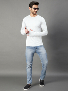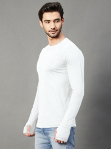 Fabric:Cotton Blend, Full Sleeve, Pattern:Solid, SlimFit Round NeckT-shirt